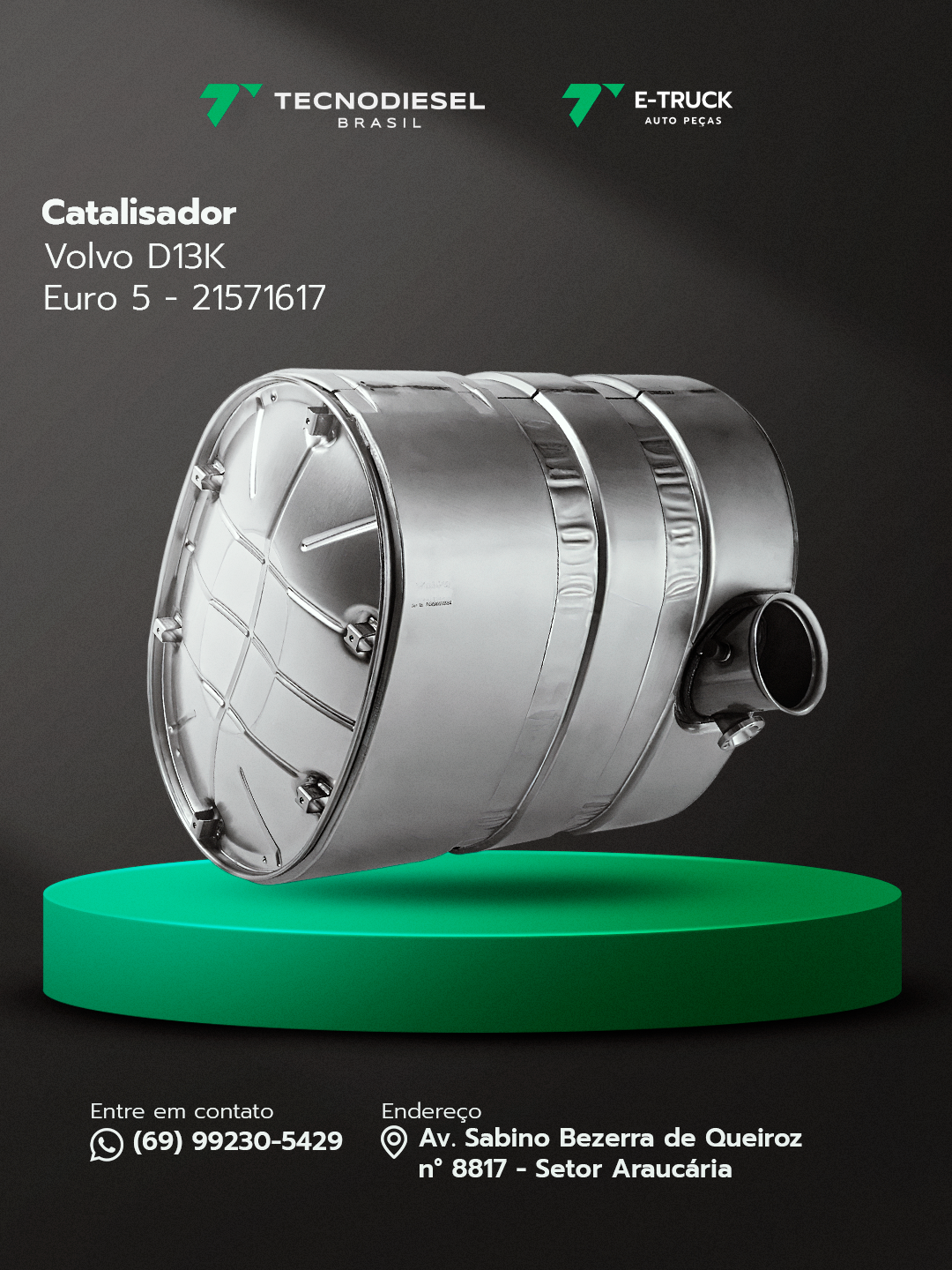 Responsável pela conversão química dos gases de escape no sistema de pós-tratamento do motor.